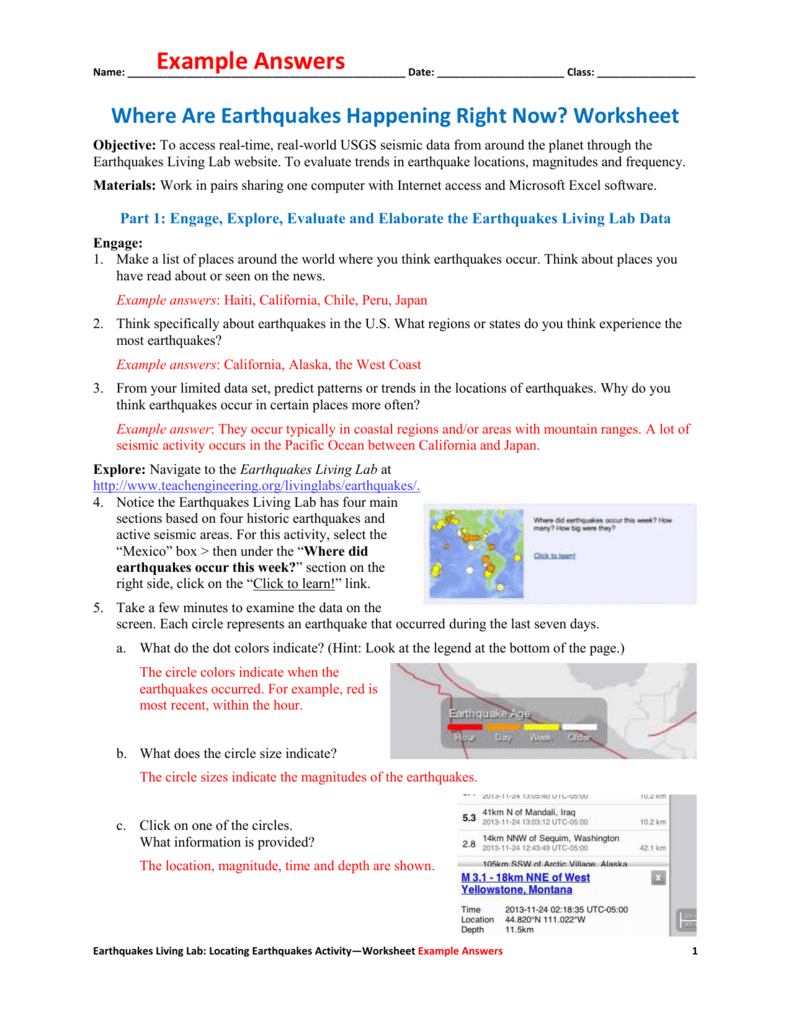 Where are earthquakes happening right now worksheet. EMSC European Mediterranean Seismological Centre provides real time earthquake information for seismic events with magnitude larger than 5 in the European. Most of them arent even noticeable. Locating Earthquakes ActivityWorksheet Example Answers 1 Where Are Earthquakes Happening Right Now.